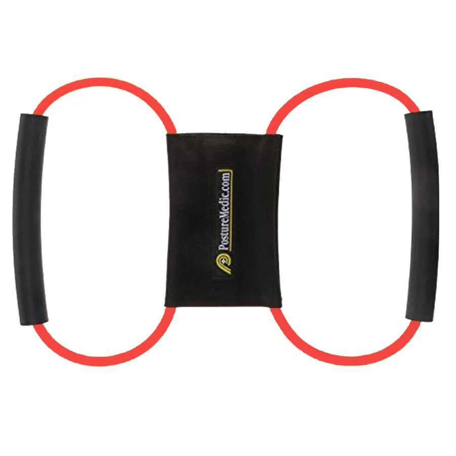 The Posture Medic s a posture reminding resistance band that helps you stretch, strengthen and stabilize your back. We developed a 6-week program to guide you towards better posture. You will learn how to stretch those tight muscles in your chest, neck and back. This increases your range of motion by loosening tight muscles, thus allowing you to straighten your back. Our strengthening exercises specifically target the muscles in your neck and back that help you maintain proper posture. These back and neck muscles are often overlooked when working out and are underutilized due to our poor posture.